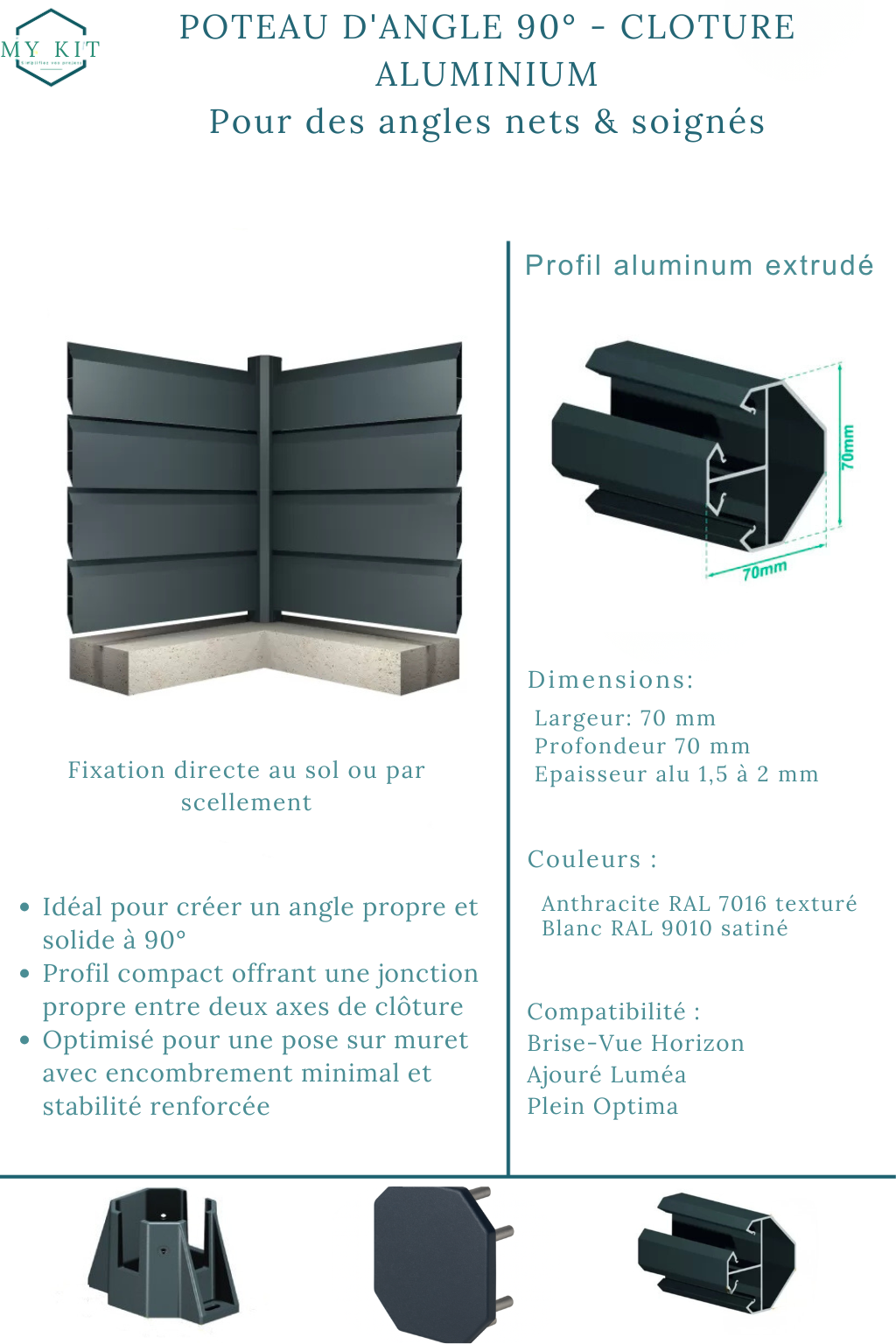 | Dimension du poteau | L 70mm x l 70mm |
